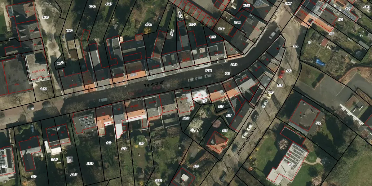 Tentstraat 42 is gelegen op kadastraal perceel VAA00E1010. Deze kadastrale aanduiding is uniek en wordt gebruikt door het Kadaster om eigendomsrechten en andere zakelijke rechten vast te leggen. Het perceel maakt onderdeel uit van de kadastrale gemeente Vaals.