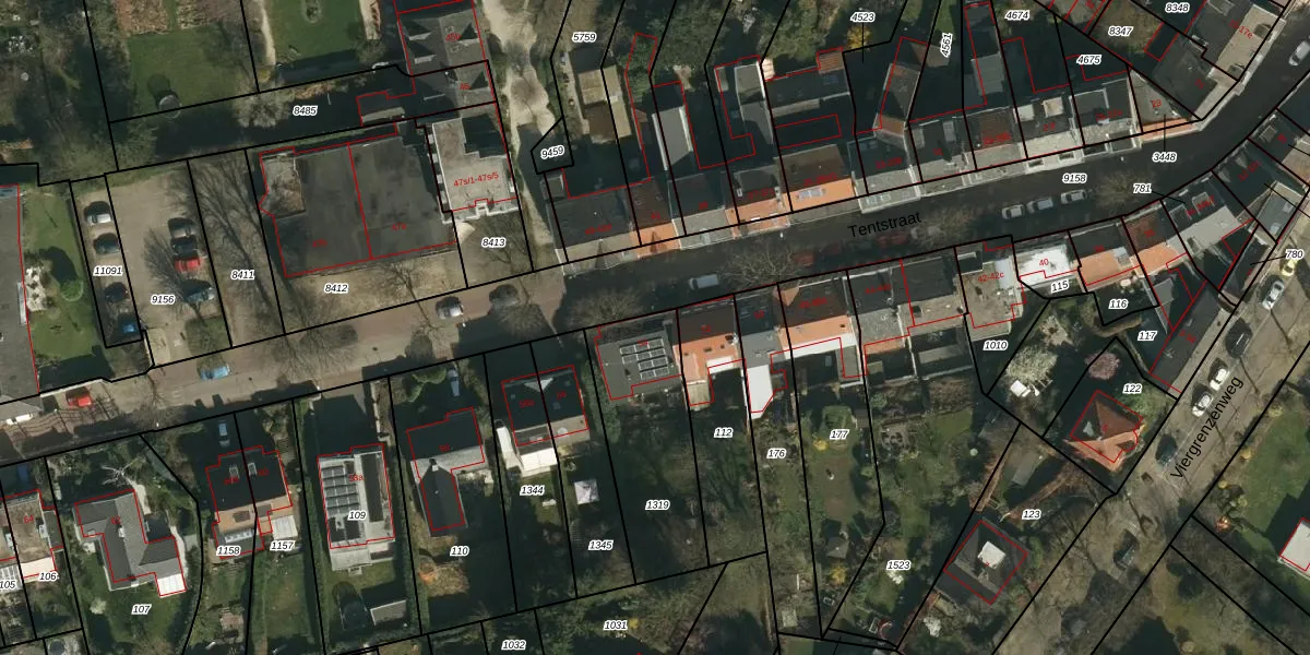 Tentstraat 54 is gelegen op kadastraal perceel VAA00E1319. Deze kadastrale aanduiding is uniek en wordt gebruikt door het Kadaster om eigendomsrechten en andere zakelijke rechten vast te leggen. Het perceel maakt onderdeel uit van de kadastrale gemeente Vaals.