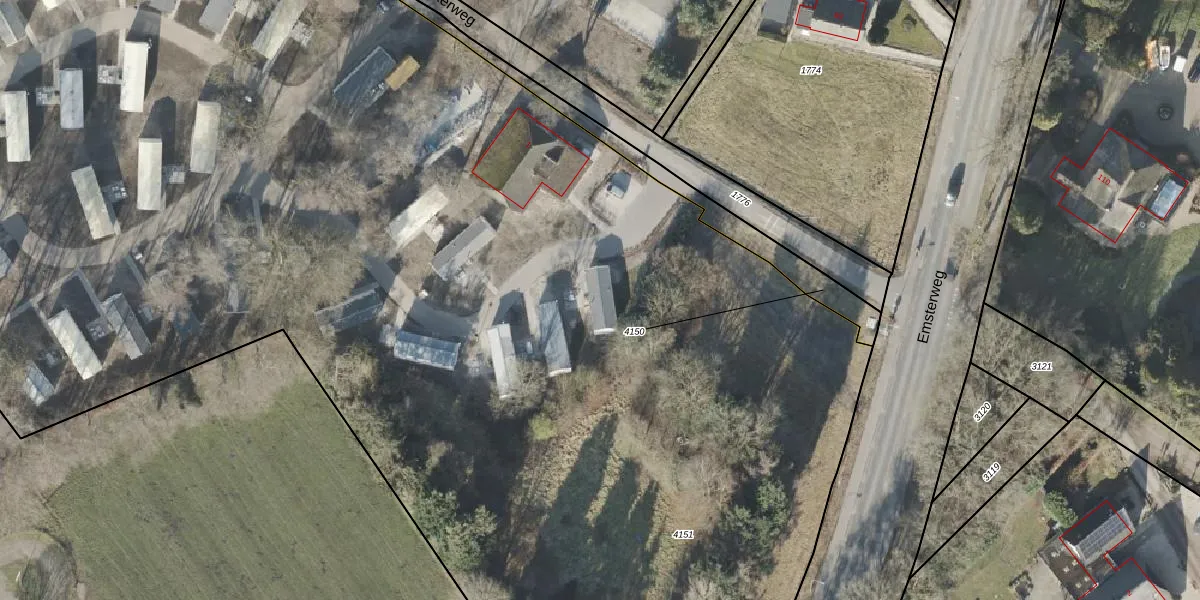 Het perceel waarop het adres ligt is VSN02-H-4151. De afkorting 'VSN02' staat voor kadastrale gemeente Vaassen. Het perceel is met 1,3 ha relatief groot. Het gemiddelde ligt in de kadastrale gemeente Vaassen op 5561,97 m². De grootste perceeloppervlakte in de kadastrale gemeente is 1,98 km². De kleinste oppervlakte bedraagt 0 m². Er zijn 33 adressen aanwezig op het perceel. De huidige grenzen van het perceel zijn digitaal in de Basisregistratie Kadaster (BRK) geregistreerd op 04-09-2025.
