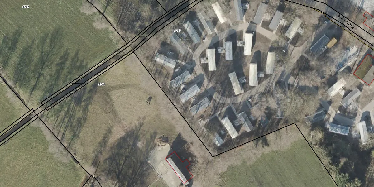 Het perceel waarop Ankerweg 1-15 staat heeft een oppervlakte van 1,3 ha. Dit is een zeer groot perceel. De perceeloppervlakte wordt geregistreerd door het Kadaster. Gedetailleerde informatie over de maten van dit perceel kunt u vinden in het rapport Kadastrale kaart met maatvoering van Ankerweg 1-15.