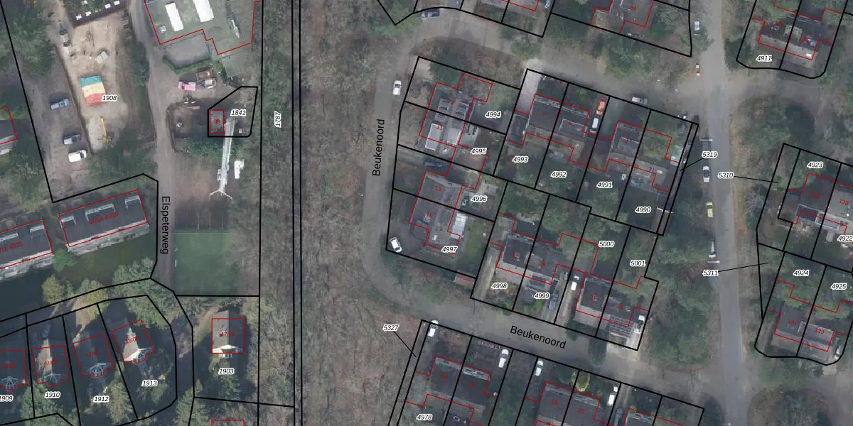 Het perceel waarop Beukenoord 15 staat heeft een oppervlakte van 341 m². Dit is een groot perceel. De perceeloppervlakte wordt geregistreerd door het Kadaster. Gedetailleerde informatie over de maten van dit perceel kunt u vinden in het rapport Kadastrale kaart met maatvoering van Beukenoord 15.