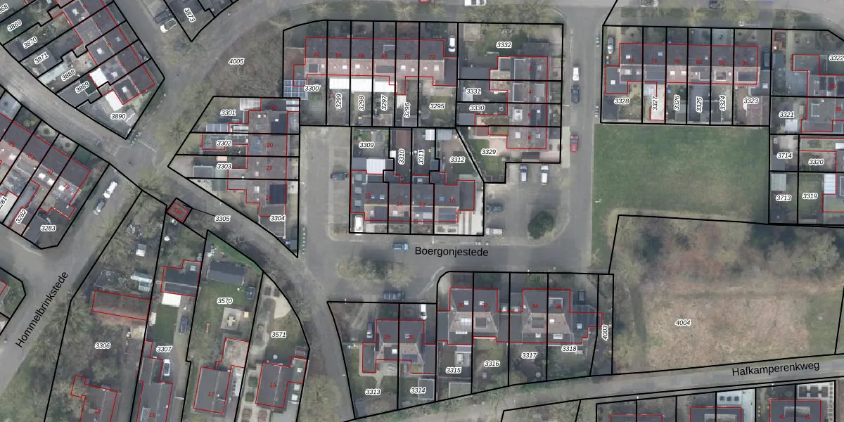 Boergonjestede 12 is gelegen op kadastraal perceel VSN02C3311. Deze kadastrale aanduiding is uniek en wordt gebruikt door het Kadaster om eigendomsrechten en andere zakelijke rechten vast te leggen. Het perceel maakt onderdeel uit van de kadastrale gemeente Vaassen.