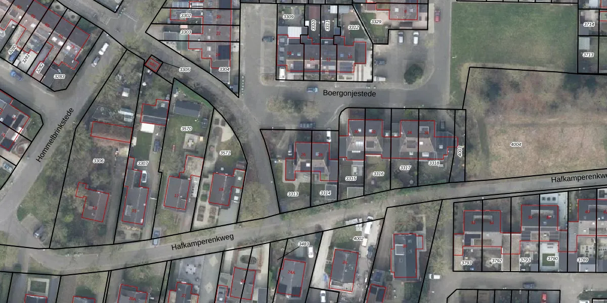 Boergonjestede 26 is gelegen op kadastraal perceel VSN02C3313. Deze kadastrale aanduiding is uniek en wordt gebruikt door het Kadaster om eigendomsrechten en andere zakelijke rechten vast te leggen. Het perceel maakt onderdeel uit van de kadastrale gemeente Vaassen.