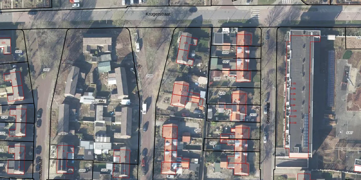 Het perceel waarop Bothastraat 3 staat heeft een oppervlakte van 4497 m². Dit is een zeer groot perceel. De perceeloppervlakte wordt geregistreerd door het Kadaster. Gedetailleerde informatie over de maten van dit perceel kunt u vinden in het rapport Kadastrale kaart met maatvoering van Bothastraat 3.