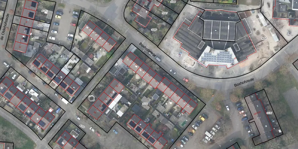 Het perceel waarop Boxhofstede 16 staat heeft een oppervlakte van 3300 m². Dit is een zeer groot perceel. De perceeloppervlakte wordt geregistreerd door het Kadaster. Gedetailleerde informatie over de maten van dit perceel kunt u vinden in het rapport Kadastrale kaart met maatvoering van Boxhofstede 16.