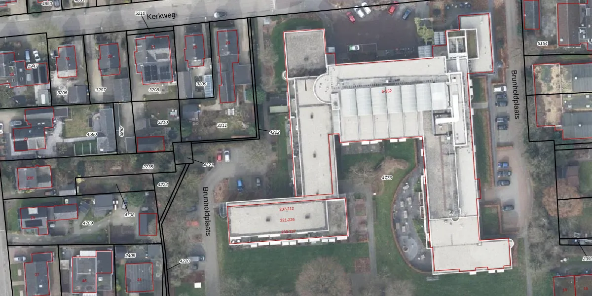 Het perceel waarop Brunholdplaats 204 staat heeft een oppervlakte van 1,3 ha. Dit is een zeer groot perceel. De perceeloppervlakte wordt geregistreerd door het Kadaster. Gedetailleerde informatie over de maten van dit perceel kunt u vinden in het rapport Kadastrale kaart met maatvoering van Brunholdplaats 204.
