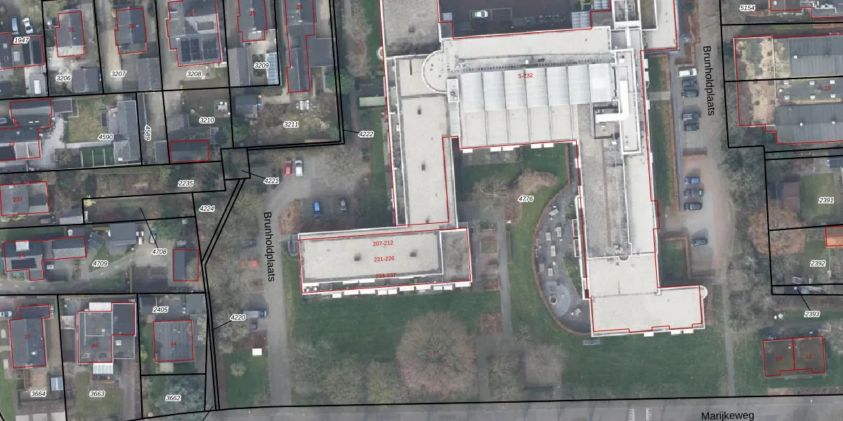 Het perceel waarop Brunholdplaats 232 staat heeft een oppervlakte van 1,3 ha. Dit is een zeer groot perceel. De perceeloppervlakte wordt geregistreerd door het Kadaster. Gedetailleerde informatie over de maten van dit perceel kunt u vinden in het rapport Kadastrale kaart met maatvoering van Brunholdplaats 232.
