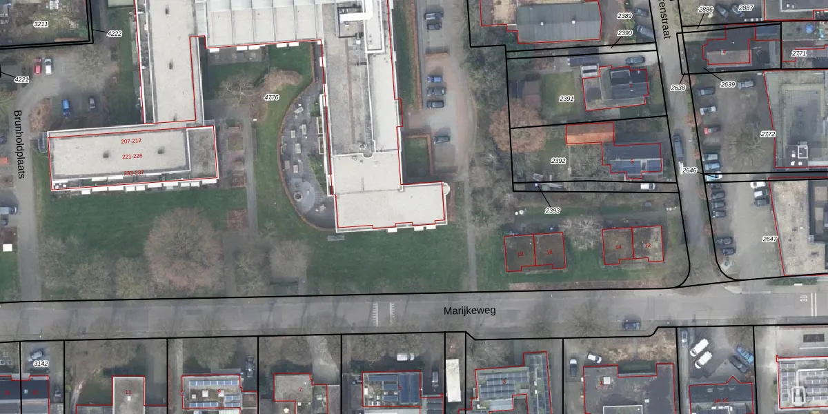 Het perceel waarop Brunholdplaats 51 staat heeft een oppervlakte van 1,3 ha. Dit is een zeer groot perceel. De perceeloppervlakte wordt geregistreerd door het Kadaster. Gedetailleerde informatie over de maten van dit perceel kunt u vinden in het rapport Kadastrale kaart met maatvoering van Brunholdplaats 51.