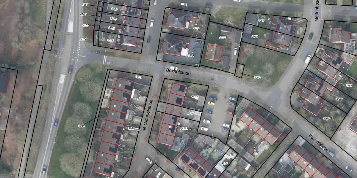Het perceel waarop de Oldehofstede 1 staat heeft een oppervlakte van 355 m². Dit is een groot perceel. De perceeloppervlakte wordt geregistreerd door het Kadaster. Gedetailleerde informatie over de maten van dit perceel kunt u vinden in het rapport Kadastrale kaart met maatvoering van de Oldehofstede 1.
