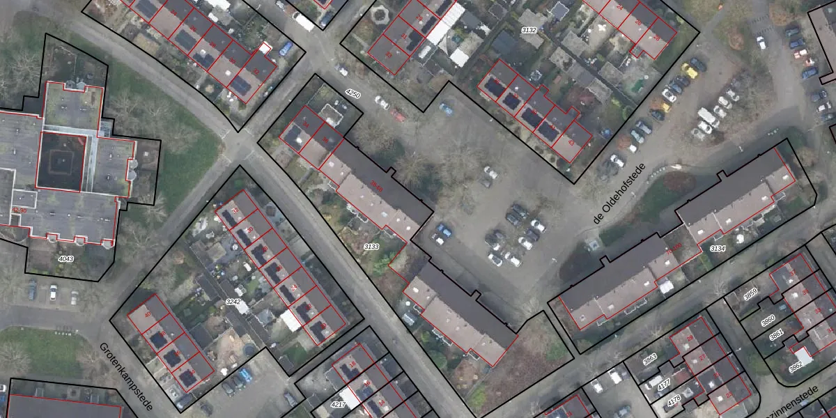 Het perceel waarop de Oldehofstede 44 staat heeft een oppervlakte van 1735 m². Dit is een zeer groot perceel. De perceeloppervlakte wordt geregistreerd door het Kadaster. Gedetailleerde informatie over de maten van dit perceel kunt u vinden in het rapport Kadastrale kaart met maatvoering van de Oldehofstede 44.