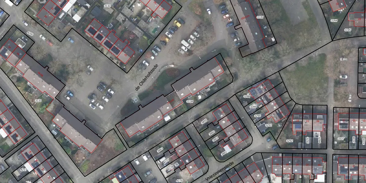 Het perceel waarop de Oldehofstede 94 staat heeft een oppervlakte van 1070 m². Dit is een zeer groot perceel. De perceeloppervlakte wordt geregistreerd door het Kadaster. Gedetailleerde informatie over de maten van dit perceel kunt u vinden in het rapport Kadastrale kaart met maatvoering van de Oldehofstede 94.