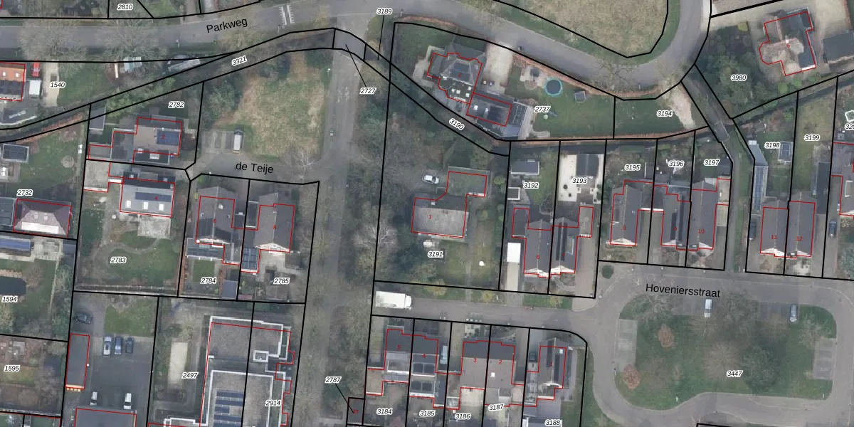 Het perceel waarop de Teije 1 staat heeft een oppervlakte van 1120 m². Dit is een zeer groot perceel. De perceeloppervlakte wordt geregistreerd door het Kadaster. Gedetailleerde informatie over de maten van dit perceel kunt u vinden in het rapport Kadastrale kaart met maatvoering van de Teije 1.