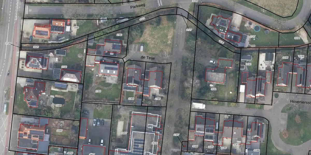 Gebruik de zoekbalk of klik op een perceel voor informatie over de adressen binnen dit perceel.