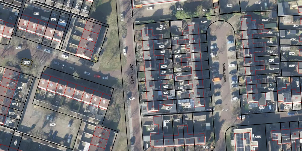 Gebruik de zoekbalk of klik op een perceel voor informatie over de adressen binnen dit perceel.