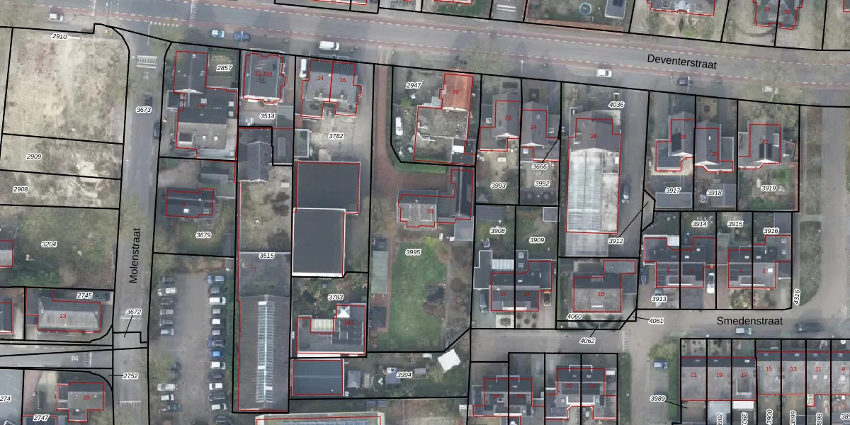 Het perceel waarop Deventerstraat 18 staat heeft een oppervlakte van 1168 m². Dit is een zeer groot perceel. De perceeloppervlakte wordt geregistreerd door het Kadaster. Gedetailleerde informatie over de maten van dit perceel kunt u vinden in het rapport Kadastrale kaart met maatvoering van Deventerstraat 18.