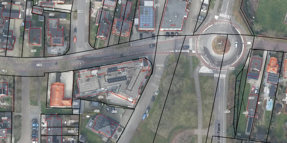 Het perceel waarop het adres ligt is VSN02-C-4318. De afkorting 'VSN02' staat voor kadastrale gemeente Vaassen. Het perceel is 1403 m² groot. Dat is kleiner dan de gemiddelde perceeloppervlakte in Vaassen, dat op 5565,73 m² ligt. De grootste perceeloppervlakte in de kadastrale gemeente is 1,98 km². De kleinste oppervlakte bedraagt 0 m². Op het perceel zijn 20 adressen aanwezig. In de Basisregistratie Kadaster (BRK) werden de grenzen van het perceel geregistreerd op 19-12-2022.