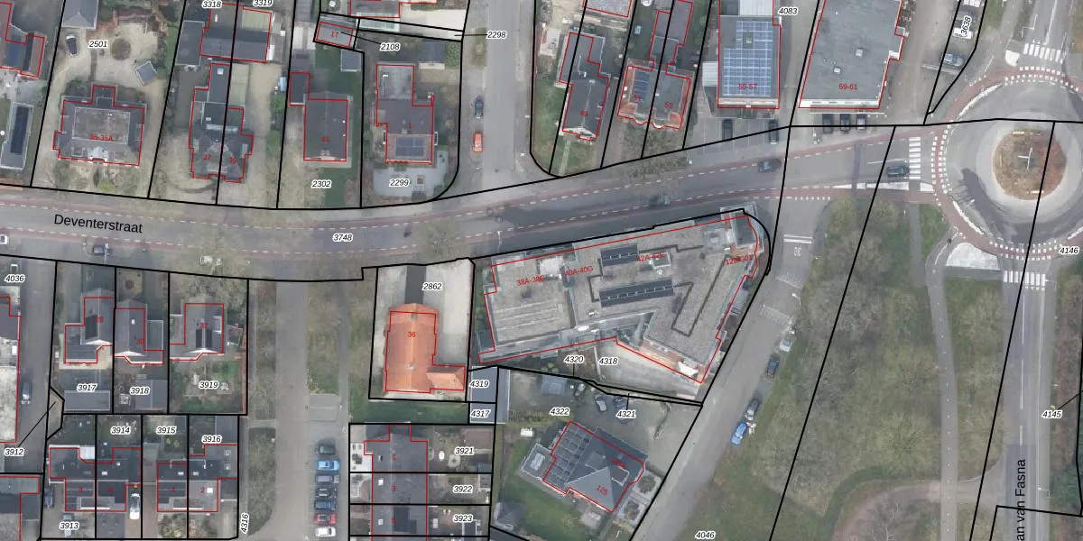 Deventerstraat 38-F is gelegen op kadastraal perceel VSN02C4318. Deze kadastrale aanduiding is uniek en wordt gebruikt door het Kadaster om eigendomsrechten en andere zakelijke rechten vast te leggen. Het perceel maakt onderdeel uit van de kadastrale gemeente Vaassen.