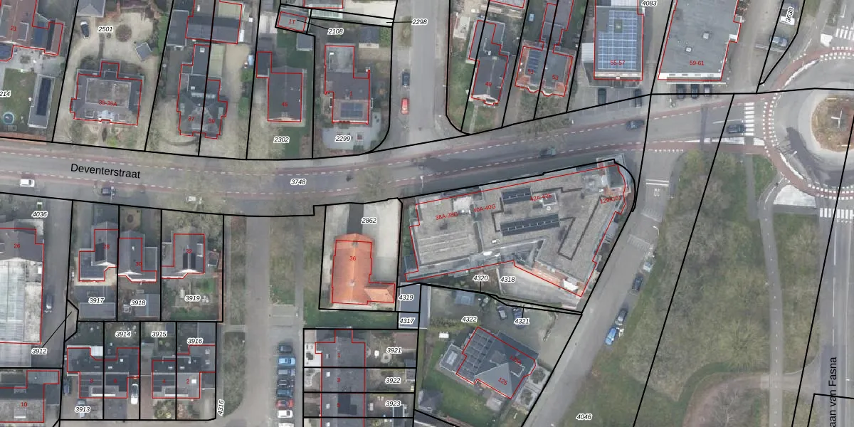 Deventerstraat 38-G is gelegen op kadastraal perceel VSN02C4318. Deze kadastrale aanduiding is uniek en wordt gebruikt door het Kadaster om eigendomsrechten en andere zakelijke rechten vast te leggen. Het perceel maakt onderdeel uit van de kadastrale gemeente Vaassen.