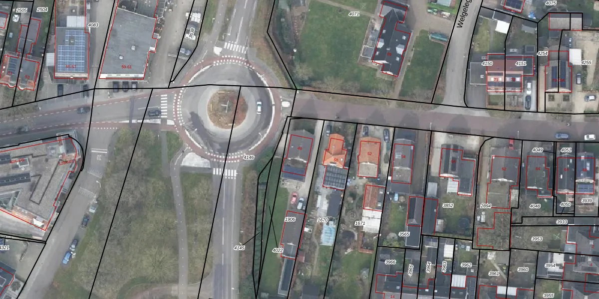 Gebruik de zoekbalk of klik op een perceel voor informatie over de adressen binnen dit perceel.