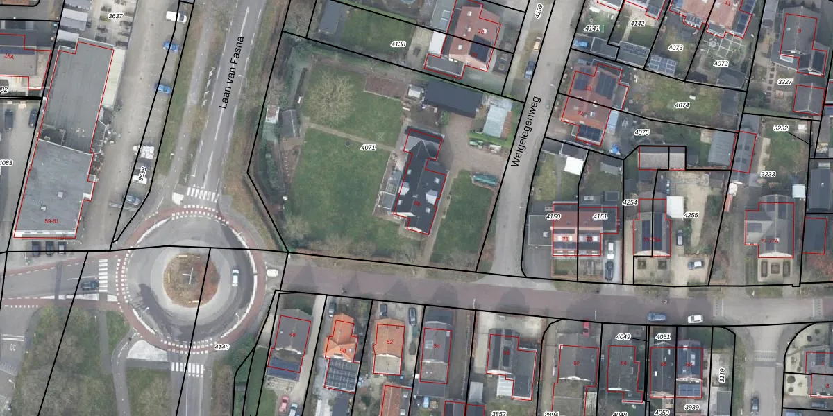 Gebruik de zoekbalk of klik op een perceel voor informatie over de adressen binnen dit perceel.