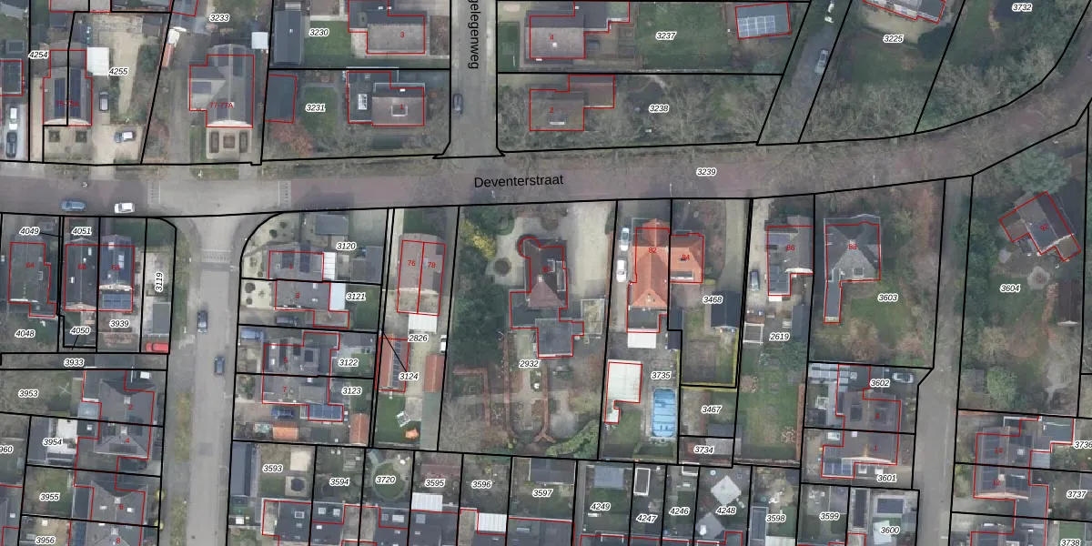 Het perceel waarop Deventerstraat 80 staat heeft een oppervlakte van 1340 m². Dit is een zeer groot perceel. De perceeloppervlakte wordt geregistreerd door het Kadaster. Gedetailleerde informatie over de maten van dit perceel kunt u vinden in het rapport Kadastrale kaart met maatvoering van Deventerstraat 80.