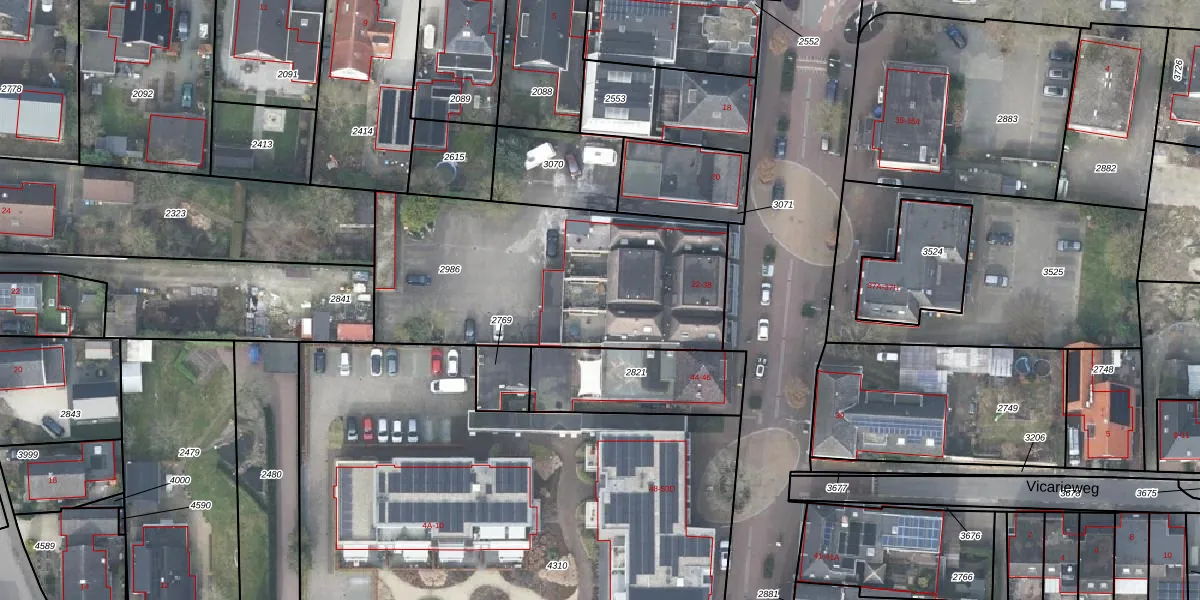 Het perceel waarop het adres ligt is VSN02-C-2986. De afkorting 'VSN02' staat voor kadastrale gemeente Vaassen. Het perceel is kleiner dan gemiddeld in Vaassen. Het perceel is 1381 m² groot, terwijl het gemiddelde ligt op 5565,73 m². De grootste perceeloppervlakte in de kadastrale gemeente is 1,98 km². De kleinste oppervlakte bedraagt 0 m². Er zijn 9 adressen aanwezig op het perceel. De laatste wijziging in het de Basisregistratie Kadaster (BRK) was op 05-07-2000.
