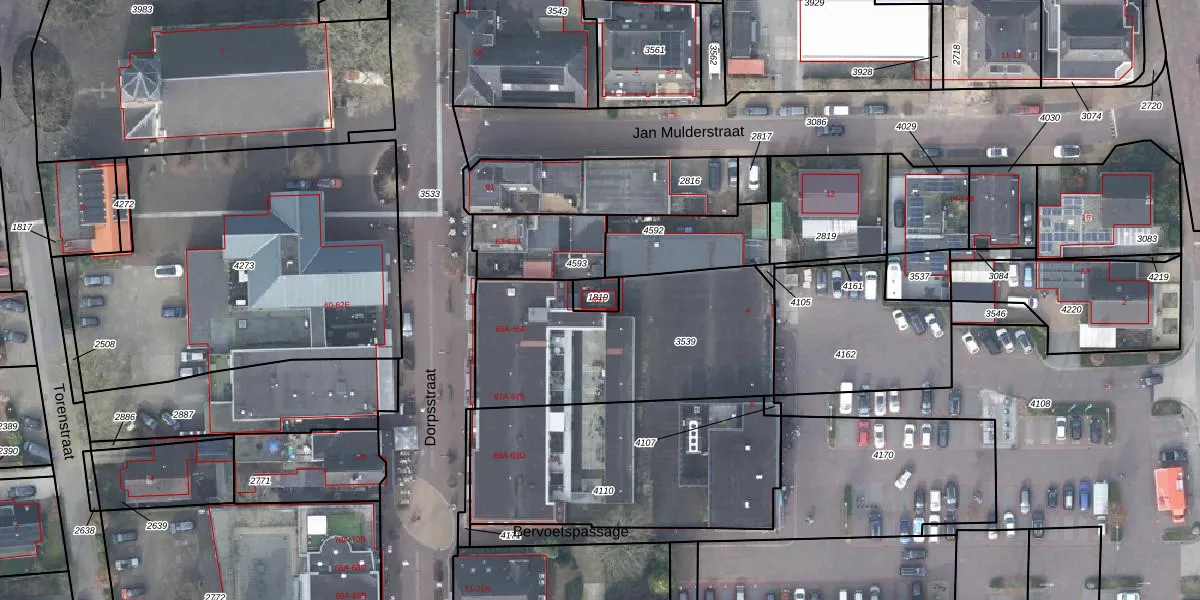Het perceel waarop Dorpsstraat 65-T staat heeft een oppervlakte van 42 m². Dit is een klein perceel. De perceeloppervlakte wordt geregistreerd door het Kadaster. Gedetailleerde informatie over de maten van dit perceel kunt u vinden in het rapport Kadastrale kaart met maatvoering van Dorpsstraat 65-T.