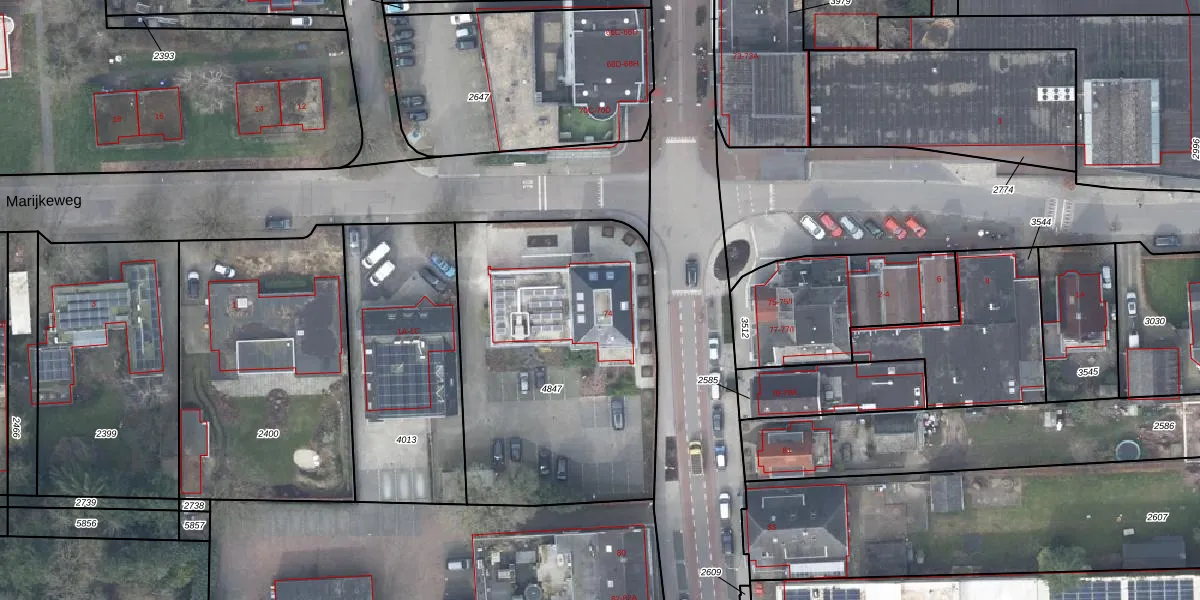 Gebruik de zoekbalk of klik op een perceel voor informatie over de adressen binnen dit perceel.