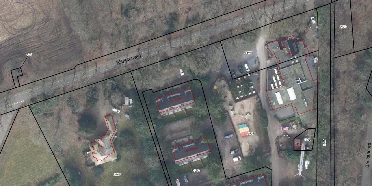 Het perceel waarop Elspeterweg 45-03 staat heeft een oppervlakte van 2875 m². Dit is een zeer groot perceel. De perceeloppervlakte wordt geregistreerd door het Kadaster. Gedetailleerde informatie over de maten van dit perceel kunt u vinden in het rapport Kadastrale kaart met maatvoering van Elspeterweg 45-03.