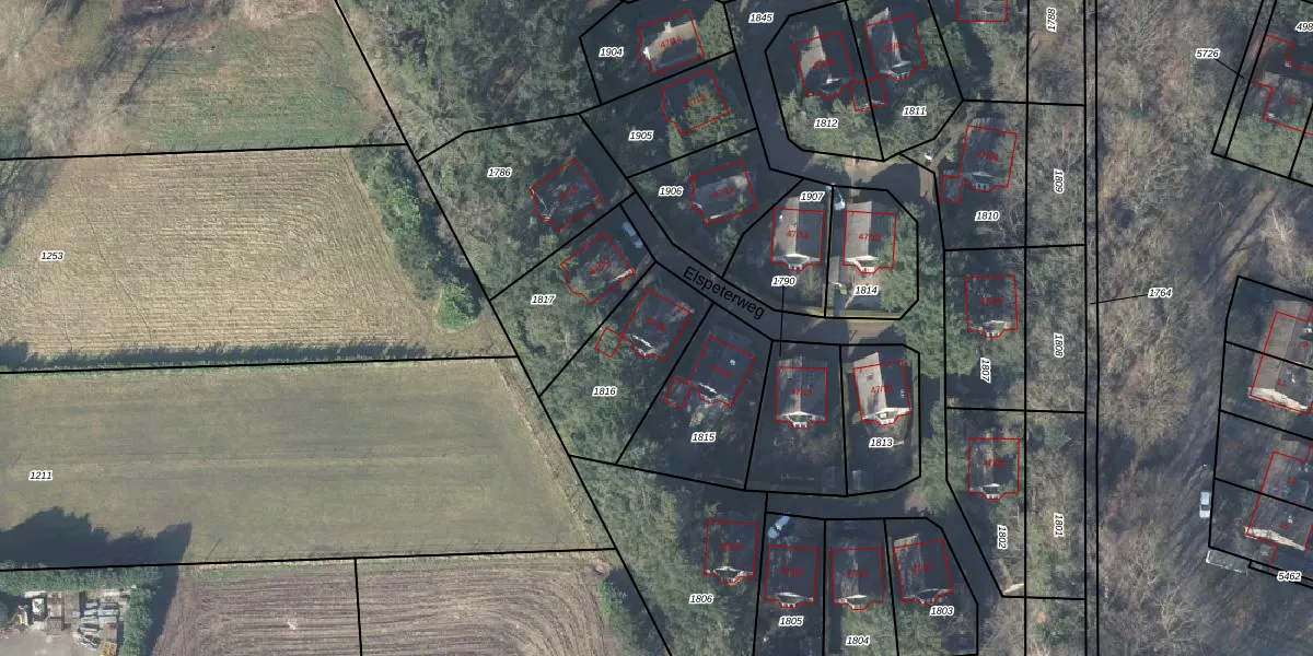 Het perceel waarop Elspeterweg 47-19 staat heeft een oppervlakte van 397 m². Dit is een groot perceel. De perceeloppervlakte wordt geregistreerd door het Kadaster. Gedetailleerde informatie over de maten van dit perceel kunt u vinden in het rapport Kadastrale kaart met maatvoering van Elspeterweg 47-19.
