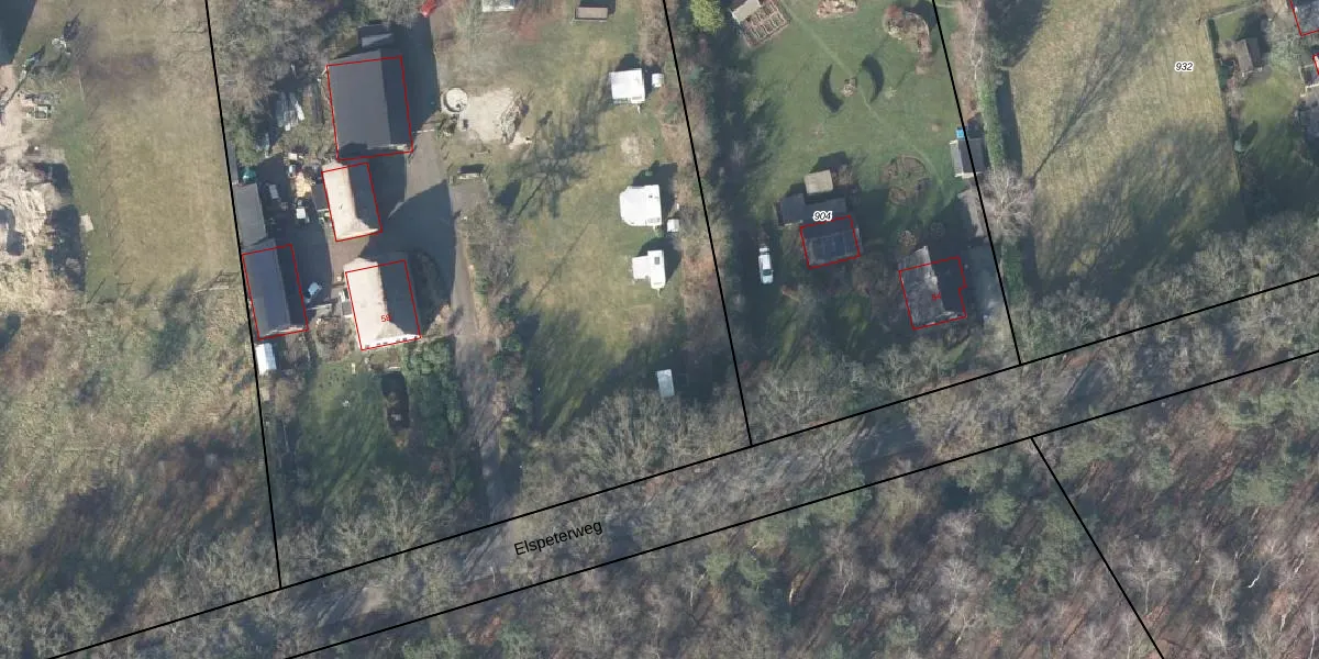 Het perceel waarop Elspeterweg 58-D staat heeft een oppervlakte van 2,1 ha. Dit is een zeer groot perceel. De perceeloppervlakte wordt geregistreerd door het Kadaster. Gedetailleerde informatie over de maten van dit perceel kunt u vinden in het rapport Kadastrale kaart met maatvoering van Elspeterweg 58-D.