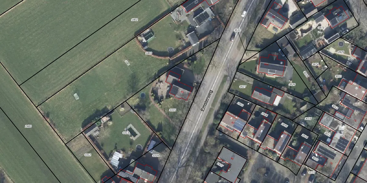 Emsterweg 65 is gelegen op kadastraal perceel VSN02H3315. Deze kadastrale aanduiding is uniek en wordt gebruikt door het Kadaster om eigendomsrechten en andere zakelijke rechten vast te leggen. Het perceel maakt onderdeel uit van de kadastrale gemeente Vaassen.