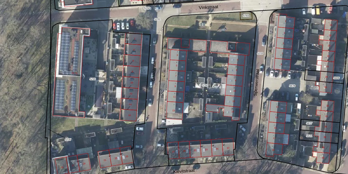 Het perceel waarop het adres ligt is VSN02-D-5792. De afkorting 'VSN02' staat voor kadastrale gemeente Vaassen. De gemiddelde perceelgrootte in Vaassen is 5553,71 m². Dit perceel is kleiner: de perceeloppervlakte bedraagt 4205 m². Het kleinste perceel in de kadastrale gemeente is 0 m² groot. De grootste perceeloppervlakte is 1,98 km². Op het perceel liggen in totaal 20 adressen. In de Basisregistratie Kadaster (BRK) werden de grenzen van het perceel geregistreerd op 06-12-2023.