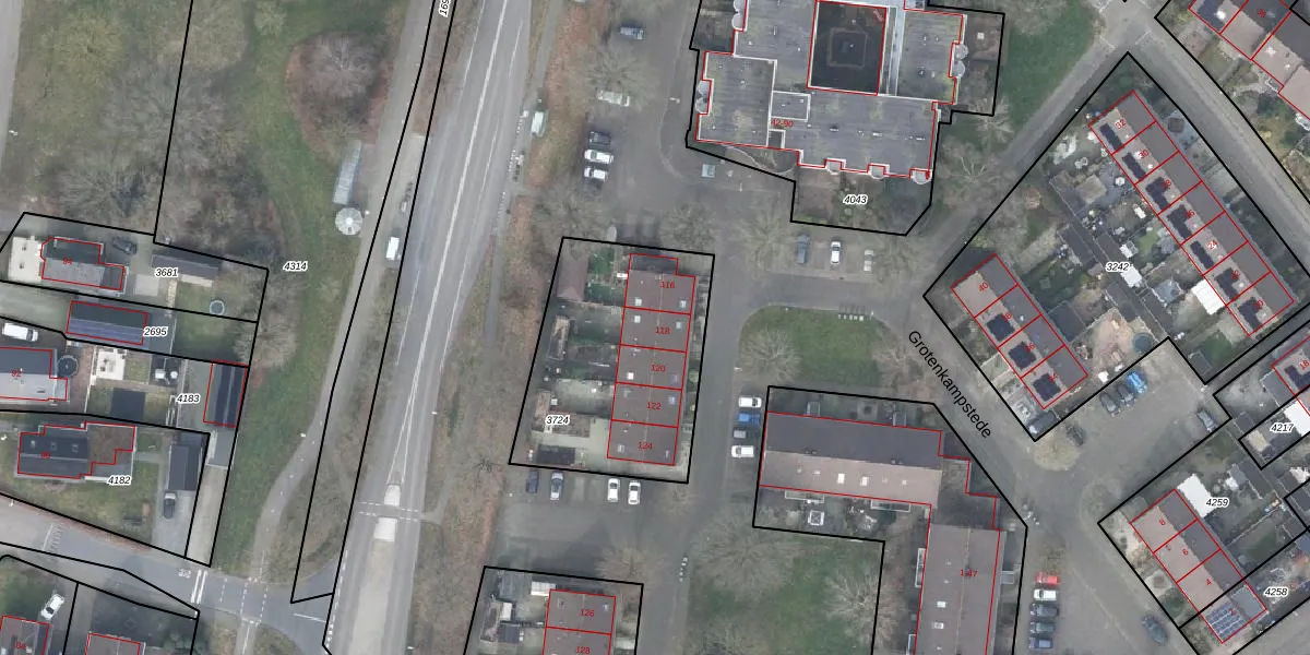 Het perceel waarop Grotenkampstede 118 staat heeft een oppervlakte van 880 m². Dit is een groot perceel. De perceeloppervlakte wordt geregistreerd door het Kadaster. Gedetailleerde informatie over de maten van dit perceel kunt u vinden in het rapport Kadastrale kaart met maatvoering van Grotenkampstede 118.