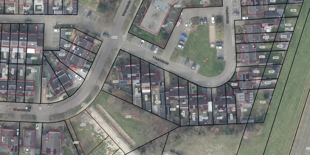 Gebruik de zoekbalk of klik op een perceel voor informatie over de adressen binnen dit perceel.