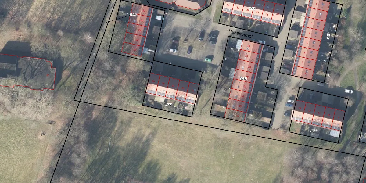 Hazelaarhof 23 is gelegen op kadastraal perceel VSN02D4082. Deze kadastrale aanduiding is uniek en wordt gebruikt door het Kadaster om eigendomsrechten en andere zakelijke rechten vast te leggen. Het perceel maakt onderdeel uit van de kadastrale gemeente Vaassen.
