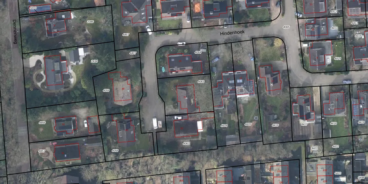 Het perceel waarop Hindenhoek 21 staat heeft een oppervlakte van 561 m². Dit is een groot perceel. De perceeloppervlakte wordt geregistreerd door het Kadaster. Gedetailleerde informatie over de maten van dit perceel kunt u vinden in het rapport Kadastrale kaart met maatvoering van Hindenhoek 21.