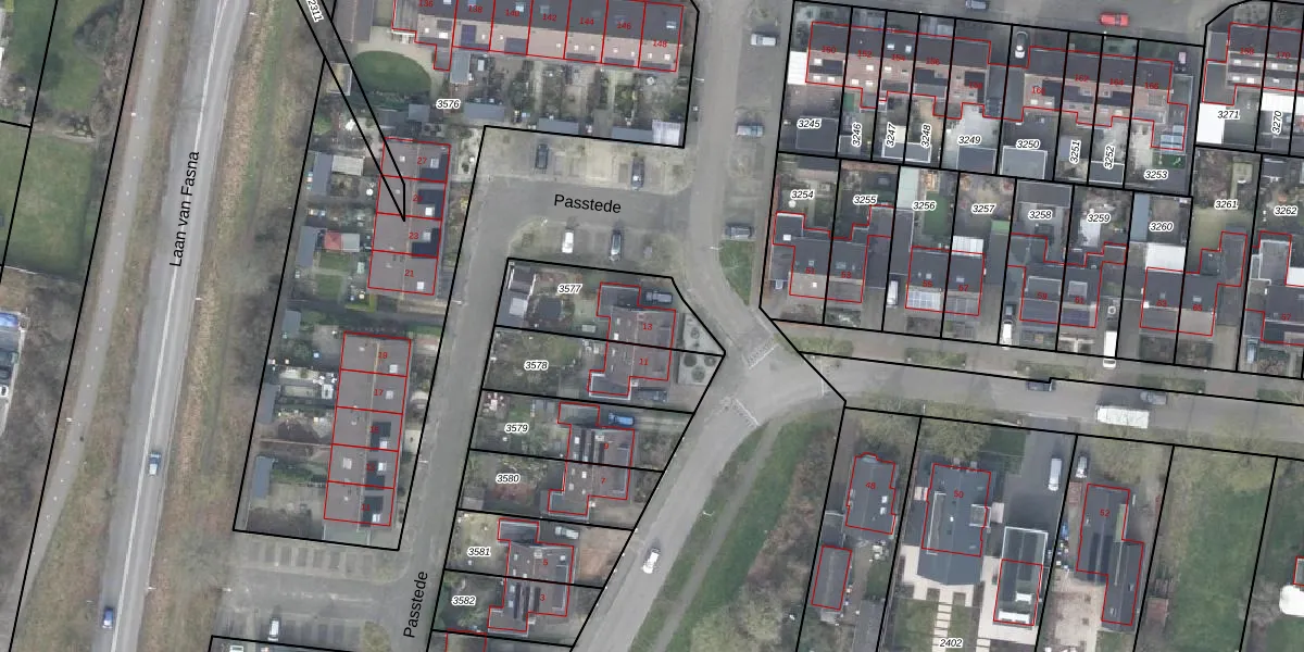 Gebruik de zoekbalk of klik op een perceel voor informatie over de adressen binnen dit perceel.