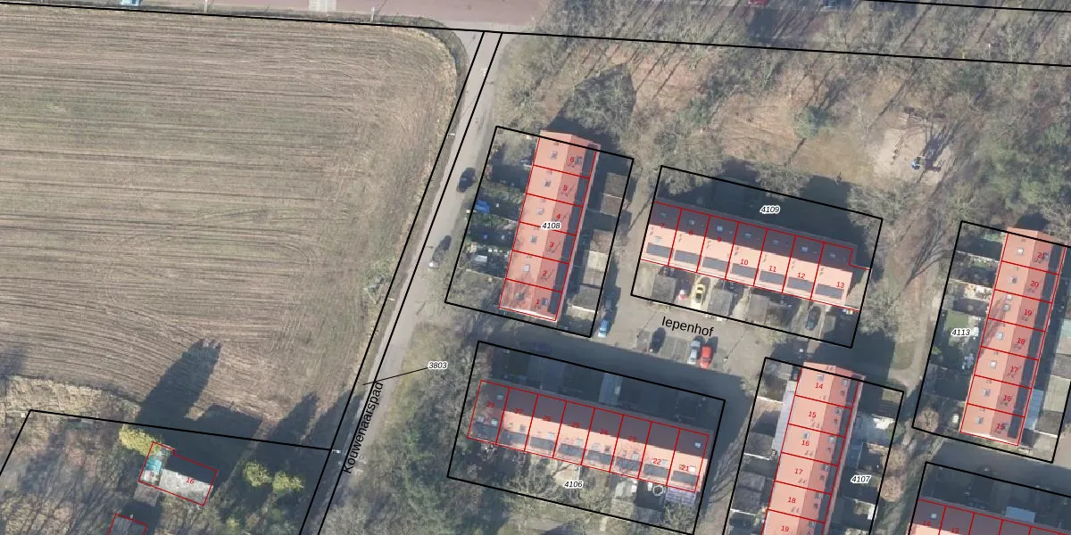 Het perceel waarop Iepenhof 2 staat heeft een oppervlakte van 931 m². Dit is een groot perceel. De perceeloppervlakte wordt geregistreerd door het Kadaster. Gedetailleerde informatie over de maten van dit perceel kunt u vinden in het rapport Kadastrale kaart met maatvoering van Iepenhof 2.
