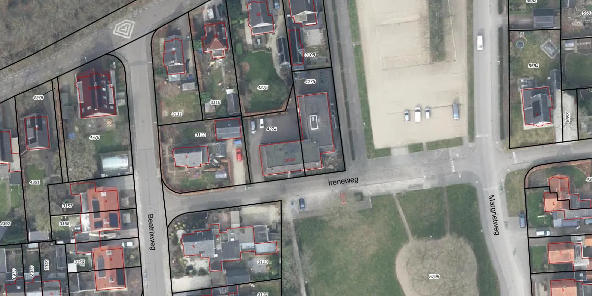 Het perceel waarop Ireneweg 20 staat heeft een oppervlakte van 450 m². Dit is een groot perceel. De perceeloppervlakte wordt geregistreerd door het Kadaster. Gedetailleerde informatie over de maten van dit perceel kunt u vinden in het rapport Kadastrale kaart met maatvoering van Ireneweg 20.