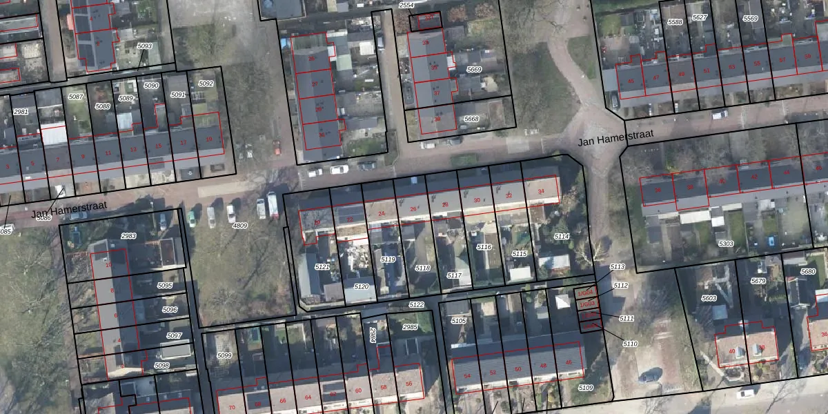 Gebruik de zoekbalk of klik op een perceel voor informatie over de adressen binnen dit perceel.