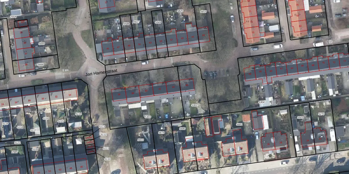 Het perceel waarop Jan Hamerstraat 44 staat heeft een oppervlakte van 1330 m². Dit is een zeer groot perceel. De perceeloppervlakte wordt geregistreerd door het Kadaster. Gedetailleerde informatie over de maten van dit perceel kunt u vinden in het rapport Kadastrale kaart met maatvoering van Jan Hamerstraat 44.