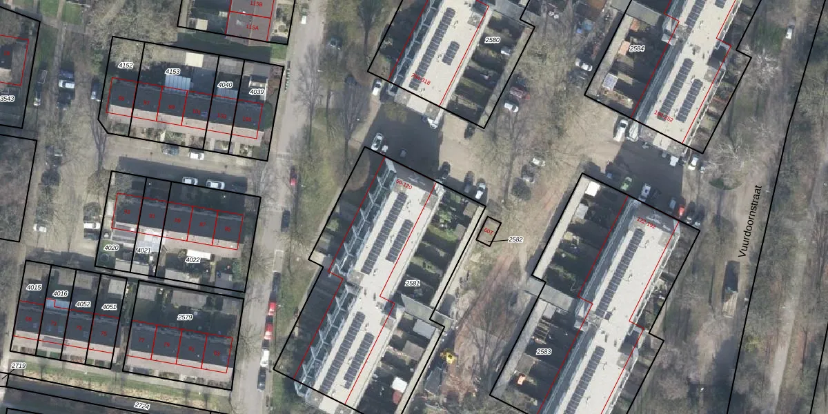 Het perceel waarop het adres ligt is VSN02-H-2581. De afkorting 'VSN02' staat voor kadastrale gemeente Vaassen. Het perceel is kleiner dan gemiddeld in Vaassen. Het perceel is 1895 m² groot, terwijl het gemiddelde ligt op 5565,73 m². Het kleinste perceel in de kadastrale gemeente is 0 m² groot. De grootste perceeloppervlakte is 1,98 km². Op het perceel zijn 36 adressen aanwezig. De huidige grenzen van het perceel zijn digitaal in de Basisregistratie Kadaster (BRK) geregistreerd op 13-09-2010.