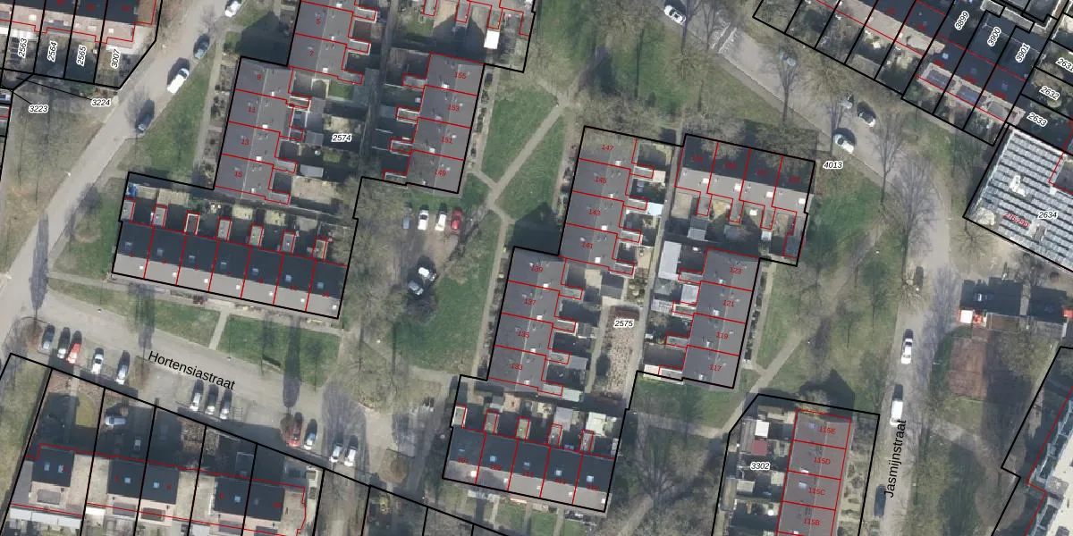 Het perceel waarop Jasmijnstraat 139 staat heeft een oppervlakte van 2710 m². Dit is een zeer groot perceel. De perceeloppervlakte wordt geregistreerd door het Kadaster. Gedetailleerde informatie over de maten van dit perceel kunt u vinden in het rapport Kadastrale kaart met maatvoering van Jasmijnstraat 139.