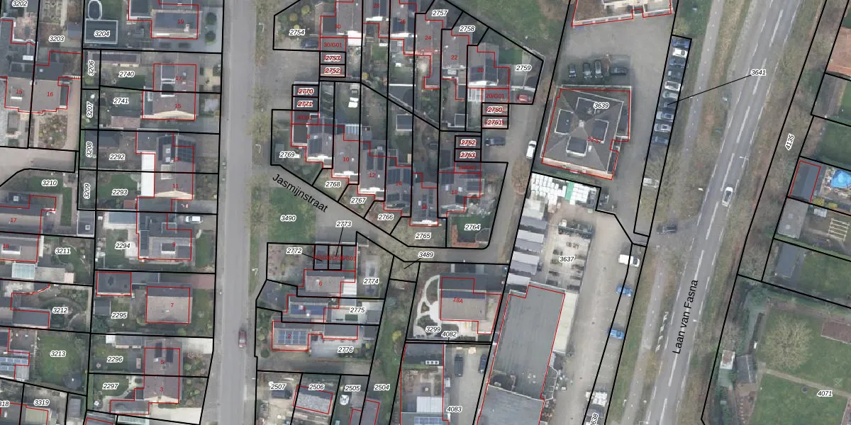 Jasmijnstraat 16 is gelegen op kadastraal perceel VSN02H2765. Deze kadastrale aanduiding is uniek en wordt gebruikt door het Kadaster om eigendomsrechten en andere zakelijke rechten vast te leggen. Het perceel maakt onderdeel uit van de kadastrale gemeente Vaassen.