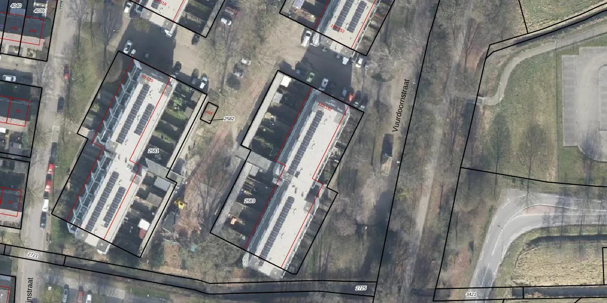 Het perceel waarop het adres ligt is VSN02-H-2583. De afkorting 'VSN02' staat voor kadastrale gemeente Vaassen. Het perceel is kleiner dan gemiddeld in Vaassen. Het perceel is 1840 m² groot, terwijl het gemiddelde ligt op 5554,46 m². Het grootste perceel in de kadastrale gemeente is 1,98 km². Het kleinste perceel heeft een oppervlakte van 0 m². Op het perceel liggen in totaal 36 adressen. In de Basisregistratie Kadaster (BRK) werden de grenzen van het perceel geregistreerd op 13-09-2010.