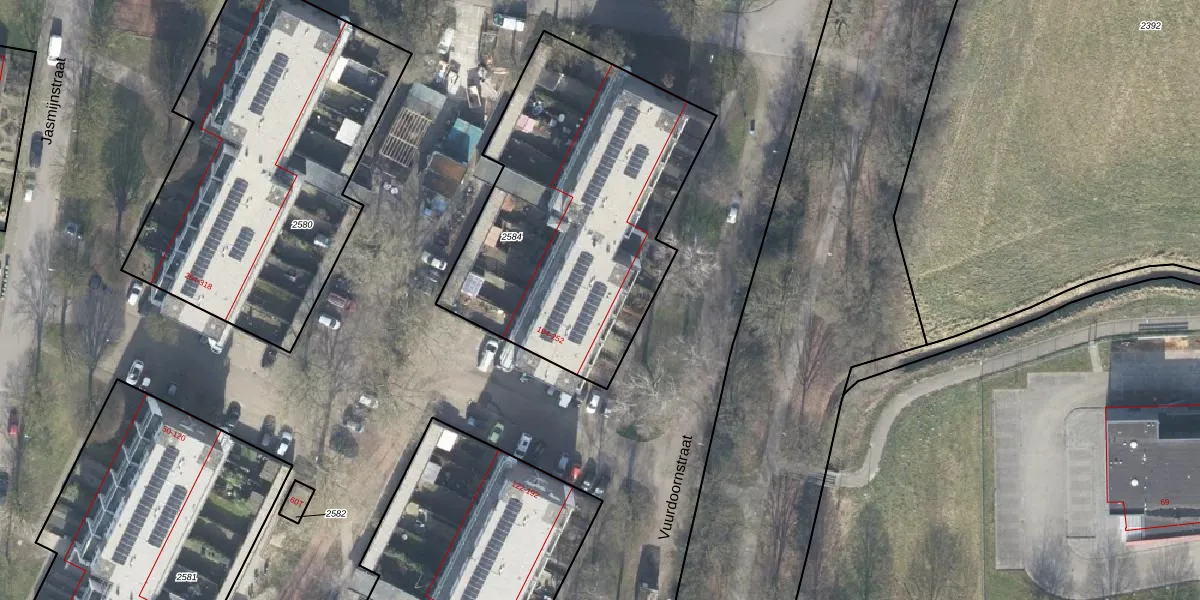 Jasmijnstraat 218 is gelegen op kadastraal perceel VSN02H2584. Deze kadastrale aanduiding is uniek en wordt gebruikt door het Kadaster om eigendomsrechten en andere zakelijke rechten vast te leggen. Het perceel maakt onderdeel uit van de kadastrale gemeente Vaassen.