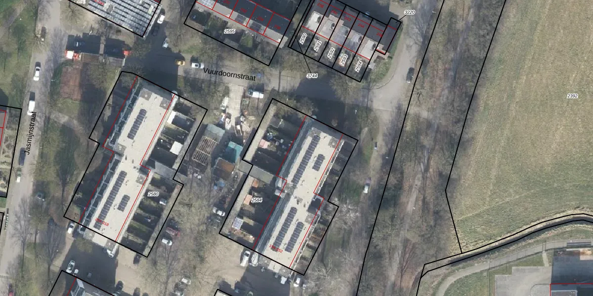 Het perceel waarop Jasmijnstraat 228 staat heeft een oppervlakte van 1567 m². Dit is een zeer groot perceel. De perceeloppervlakte wordt geregistreerd door het Kadaster. Gedetailleerde informatie over de maten van dit perceel kunt u vinden in het rapport Kadastrale kaart met maatvoering van Jasmijnstraat 228.