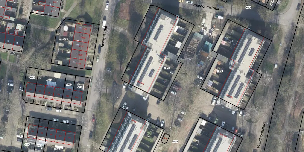 Het perceel waarop Jasmijnstraat 282 staat heeft een oppervlakte van 1680 m². Dit is een zeer groot perceel. De perceeloppervlakte wordt geregistreerd door het Kadaster. Gedetailleerde informatie over de maten van dit perceel kunt u vinden in het rapport Kadastrale kaart met maatvoering van Jasmijnstraat 282.
