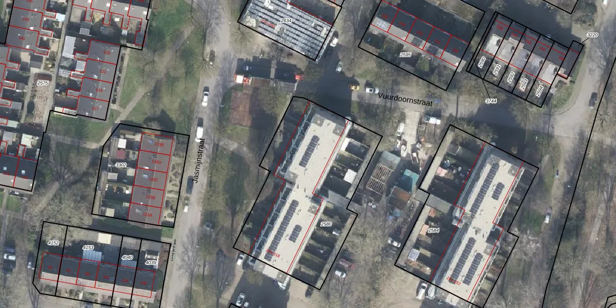 Jasmijnstraat 302 is gelegen op kadastraal perceel VSN02H2580. Deze kadastrale aanduiding is uniek en wordt gebruikt door het Kadaster om eigendomsrechten en andere zakelijke rechten vast te leggen. Het perceel maakt onderdeel uit van de kadastrale gemeente Vaassen.